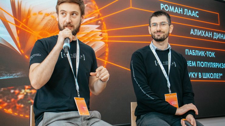 Учительский день фестиваля науки «Кстати» в Томске открылся паблик-током «Как и зачем популяризировать науку в школе». Его участниками стали учитель обществознания и права, абсолютный победитель Всероссийского конкурса «Учитель года России — 2018» Алихан Динаев и директор Центра образовательных продуктов, кандидат технических наук, доцент Томского Политеха, основатель школы подготовки к ЕГЭ «Постоянная Планка» Роман Лаас.
